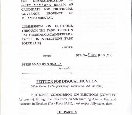 Petition for disqualification case giduso sa COMELEC batok Unabia!