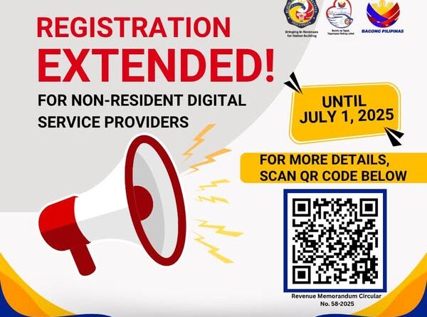 Base sa statement nga gi-issue,gibutyag sa BIR nga nag-isyu si Commissioner Romeo Lumagui Jr., og Revenue Memorandum Circular kon RMC No.58-2025, nga naglugway sa deadline sa online o electronic registration sa tanang Non-Resident Digital Service Providers kon NRDSPs hangtod Hulyo 1, 2025.