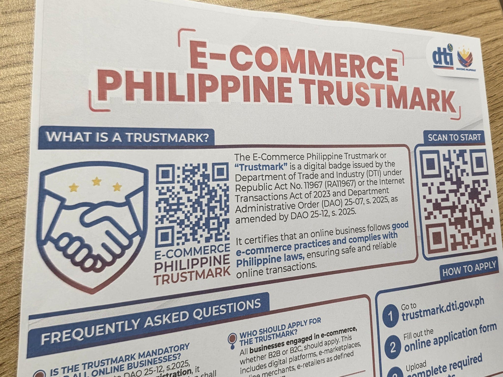 Subling gibutyag ni DTI Assistant Secretary Marcus Valdez II nga mandatory sa tanang online businesses ang pagkuha og Trustmark.
