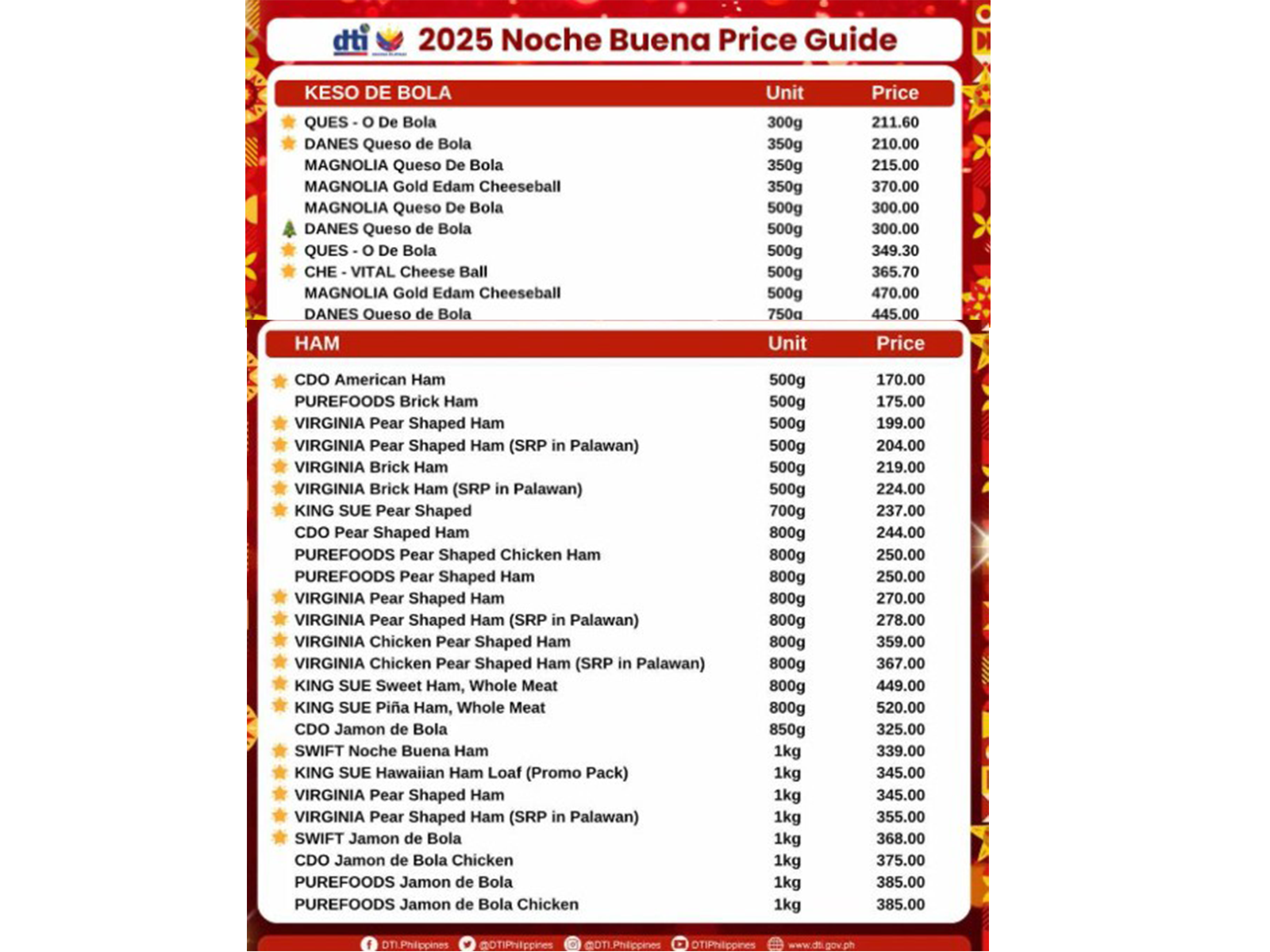 Base sa Department of Trade and Industry kon DTI Noche Buena price guide.