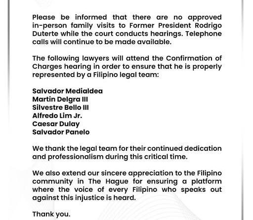 DILI una tugotan sa International Criminal Court kon ICC ang pagbisita sa pamilya ni former President Rodrigo Duterte!