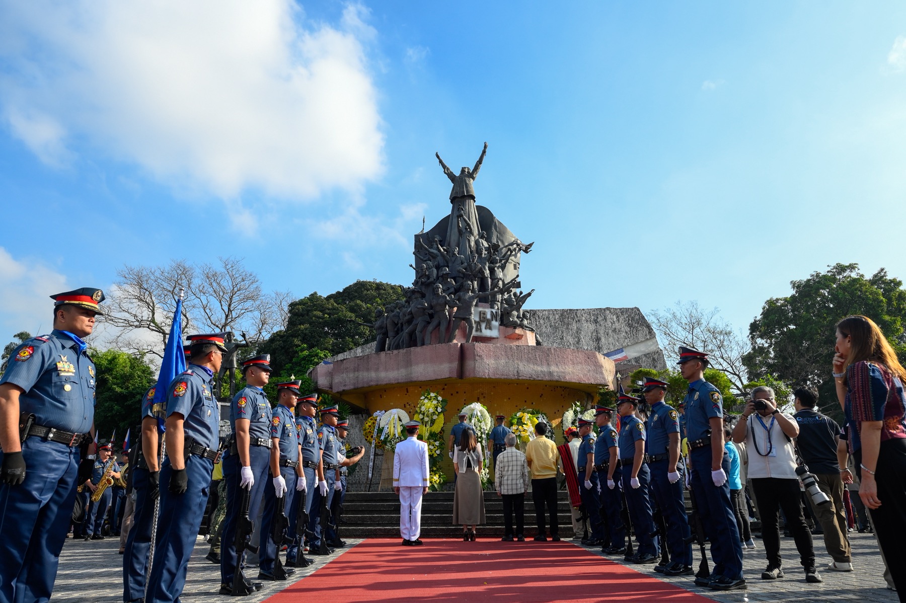 GIPANGULOHAN sa Quezon City officials, representatives sa National Historical Commission of the Philippines ug EDSA People Power Commission ang wreath-laying ceremony sa EDSA People Power Monument!