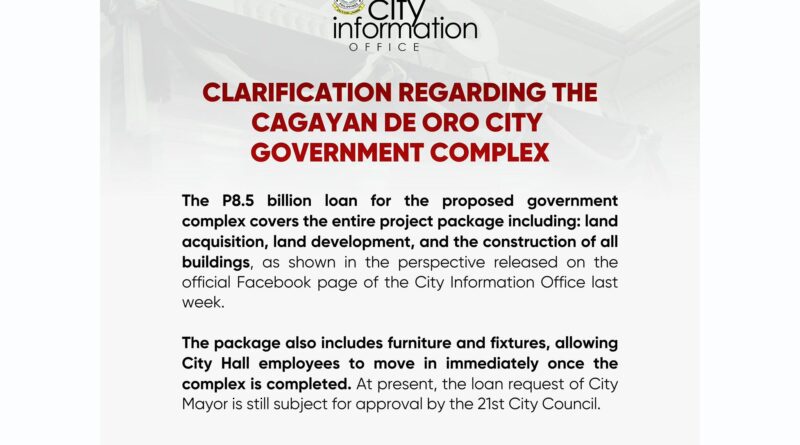 Kabahin sa 8.5 billion pesos nga utangon alang sa gisugyot nga government complex, naglangkob sa tibuok project package.